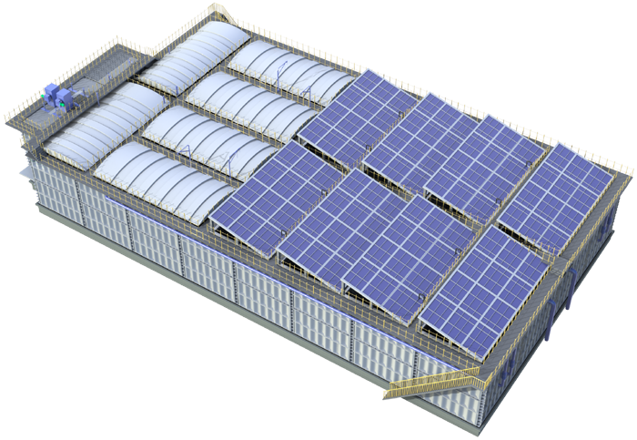 省錢、省事、省力、省心——華騏環(huán)保Sup-ASS模塊化裝配式水廠正以一種極簡的方式逐步顛覆傳統(tǒng)的污水廠鋼砼結(jié)構(gòu)非標(biāo)準(zhǔn)化的建造模式。Sup-ASS裝配式水廠采用標(biāo)準(zhǔn)化鋼制模塊預(yù)制拼裝,結(jié)構(gòu)優(yōu)化模擬,智能化流水線生產(chǎn),使預(yù)制模塊高度標(biāo)準(zhǔn)化、精度高、拼裝靈活。預(yù)制模塊系自動模壓波紋板模塊,平頂正弦波波形,相對于梯形或矩形結(jié)構(gòu),它的結(jié)構(gòu)更穩(wěn)定、強(qiáng)度更高、材料更省,因此較之混凝土構(gòu)筑物的造價(jià)更有優(yōu)勢。Sup-ASS裝配式水廠運(yùn)輸及施工方便靈活,不受運(yùn)輸尺寸、構(gòu)筑物體積、污水處理工藝的限制,可以像積木一樣根據(jù)項(xiàng)目的實(shí)際需求進(jìn)行自由的組合;Sup-ASS裝配式水廠所有模塊由螺栓與鎖扣緊固連接、拆裝方便,可重復(fù)使用,即使遇到規(guī)劃調(diào)整的情況,整廠亦可拆卸搬遷,循環(huán)使用率可達(dá)100%;Sup-ASS裝配式水廠工期較之傳統(tǒng)水廠可縮短70%左右,比如,日處理量5萬噸的傳統(tǒng)鋼砼結(jié)構(gòu)水廠建設(shè)周期至少需要一年左右的時(shí)間,而Sup-ASS無需焊接,螺栓拼裝,僅三個(gè)月便可完工通水。Sup-ASS裝配式水廠標(biāo)準(zhǔn)化設(shè)計(jì)、智造的生產(chǎn)方式,單元模塊化拼裝方式,使施工全過程無污染真正做到綠色低碳,契合30、60碳達(dá)峰碳中和目標(biāo),實(shí)現(xiàn)傳統(tǒng)環(huán)保工程模式的顛覆。