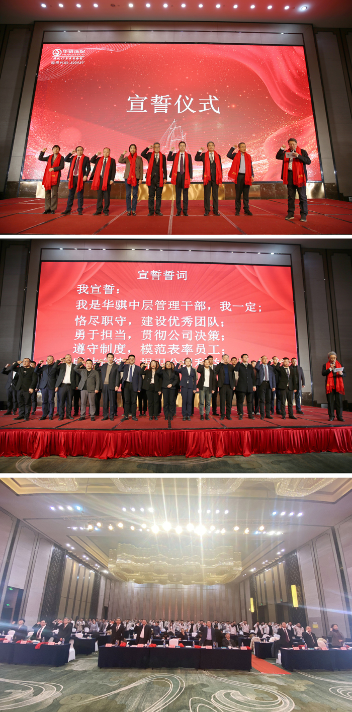 總裁鄭杰對2025年經(jīng)營工作的開展提出了部署,他通過基建潮退去、項目運營負重前行、技術(shù)應用的瓶頸、行業(yè)洗牌加劇等方面,分析了當下的行業(yè)現(xiàn)狀。鄭杰指出,危機不是來自動蕩本身,而是來自延續(xù)以往的邏輯,環(huán)保企業(yè)的業(yè)務模式、技術(shù)研發(fā)和市場擴張正遭遇空前的內(nèi)外壓力,2025 年的環(huán)保行業(yè),擺在企業(yè)面前的將是變革進一步加劇的新局面。他強調(diào),新形勢下公司的發(fā)展,首先要夯實技術(shù)產(chǎn)品化,加大原創(chuàng)、高端產(chǎn)品的研發(fā),2024年技術(shù)產(chǎn)品化已初見成效,2025年要進一步通過智慧化高端產(chǎn)品打造華騏持續(xù)的盈利能力;其次,要積極響應國家“走出去”戰(zhàn)略,不出海、就出局;再次,布局未來風口,華騏環(huán)保將在氫能產(chǎn)業(yè)的上游(制氫)、中游(儲運氫)和下游(氫能綜合應用)環(huán)節(jié)進行全面布局,形成一條完整的產(chǎn)業(yè)鏈;最后,產(chǎn)品經(jīng)理、市場各部門、各子公司應將創(chuàng)新思維置于戰(zhàn)略轉(zhuǎn)折工作的首要位置,找準產(chǎn)業(yè)與服務轉(zhuǎn)型的著力點,提高執(zhí)行力,不斷創(chuàng)新業(yè)務模式與技術(shù)服務能力。演講結(jié)束后,會議進行了高管、中層、員工的宣誓儀式,以及2024年度先進個人及集體表彰。