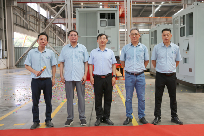 7月2日上午,“華騏環(huán)保首批儲(chǔ)能箱產(chǎn)品下線儀式”在安徽華騏環(huán)??萍脊煞萦邢薰酒煜氯Y子公司安徽華騏蔚藍(lán)智能裝備有限公司順利舉行。馬鞍山經(jīng)開(kāi)區(qū)黨工委副書(shū)記劉凌、華騏環(huán)保董事長(zhǎng)王健、總裁鄭杰、蔚藍(lán)智能裝備總經(jīng)理程曉虎等領(lǐng)導(dǎo)見(jiàn)證下線儀式。華騏環(huán)保董事長(zhǎng)王健、蔚藍(lán)智能裝備常務(wù)副總經(jīng)理張中群分別致辭。劉凌、王健、鄭杰、程曉虎、張中群為第一臺(tái)駛下生產(chǎn)線的儲(chǔ)能箱產(chǎn)品揭幕。