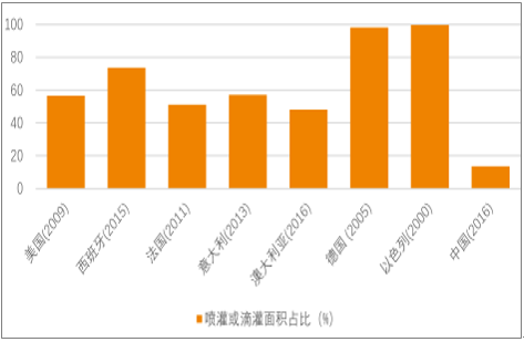 2016年,我國灌溉面積達(dá)到10.98億畝,其中噴灌和微灌面積僅1.49億畝,占比僅為13.57%。而美國2009年這一比例就達(dá)到56.5%、西班牙2015年為73.7%,以色列更是于2000年就高達(dá)90%以上。相比于發(fā)達(dá)國家,節(jié)水農(nóng)業(yè)建設(shè)仍然相對落后,節(jié)水灌溉仍然有充分的市場空間。