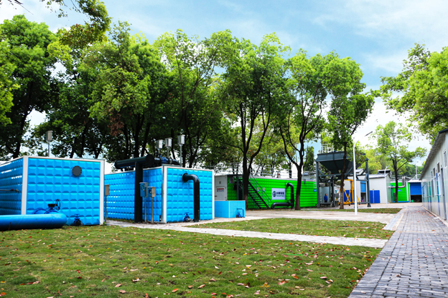 西李郢站區(qū)選址于西李郢排澇泵站東側(cè)綠地,實(shí)際占地約4480㎡,設(shè)計(jì)處理能力10000m3/d,采用我司研發(fā)的Rapid-Move®黑臭水體旁路處理系統(tǒng)——“邁巴睿?(MBBR系統(tǒng))+魔方磁®(磁混凝系統(tǒng))+魔方尊®(BAF系統(tǒng))”組合工藝產(chǎn)品。進(jìn)水從西李郢排澇泵站前端截流井取水或新建雨水調(diào)蓄池泵提取水,當(dāng)水量不足時(shí),從巢湖南路DN1000污水管道泵提取水,出水通過現(xiàn)狀雨水排口排入南淝河。