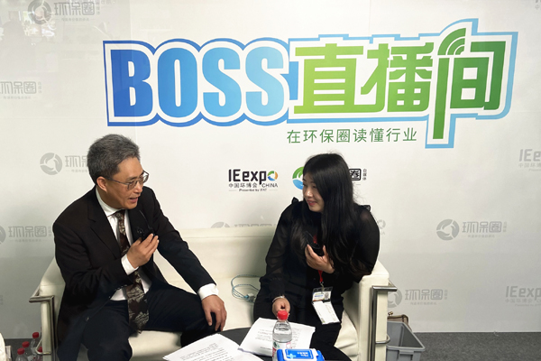 總裁鄭杰(左)在“中國環(huán)博會(huì)Boss直播間”接受采訪