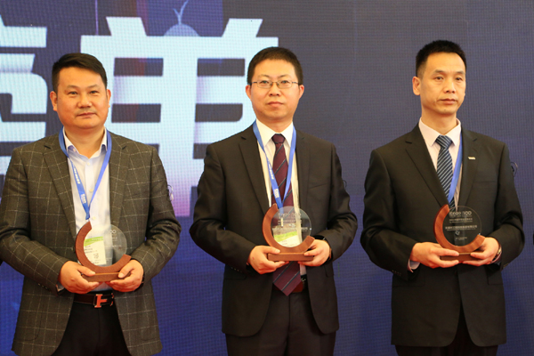 副總裁連宏偉(中)代表公司領(lǐng)取“環(huán)博會(huì)百強(qiáng)企業(yè)”獎(jiǎng)杯