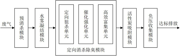 通過高效攔截富集模塊將分散的病毒氣溶膠、惡臭物質(zhì)截留吸附,實(shí)現(xiàn)廢氣中分散的氣溶膠病毒、低濃度的惡臭物質(zhì)富集,相較于分散在廢氣中,實(shí)現(xiàn)有目標(biāo)的、有方向的定向狙擊消殺,并延長消殺時間。
