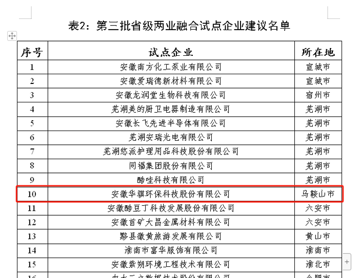 近日,安徽省發(fā)展和改革委員會網(wǎng)站發(fā)布《“十四五”第三批省級先進(jìn)制造業(yè)和現(xiàn)代服務(wù)業(yè)融合試點公示》,確定30家單位為第三批省級兩業(yè)融合試點企業(yè),安徽華騏環(huán)??萍脊煞萦邢薰境晒θ脒x!