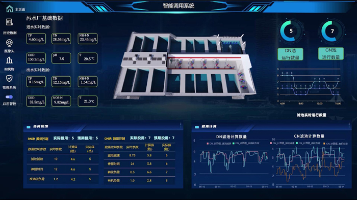 DN池、CN池運(yùn)行狀態(tài)可視化,處理水量、進(jìn)出水氨氮、濾池濾速、停留時(shí)間、反硝化負(fù)荷等實(shí)時(shí)數(shù)據(jù)“一屏掌控”,AI 人工智能與水廠運(yùn)營(yíng)無(wú)縫銜接,提供精準(zhǔn)決策方案并高效執(zhí)行,藥耗節(jié)約10-20%,電耗節(jié)約15-25%……在五河縣城北污水處理廠,安徽華騏環(huán)??萍脊煞萦邢薰尽癇AF智慧濾池”已投入運(yùn)行一年多,數(shù)字化管理成效顯著,提高了運(yùn)營(yíng)效率和經(jīng)濟(jì)效益。