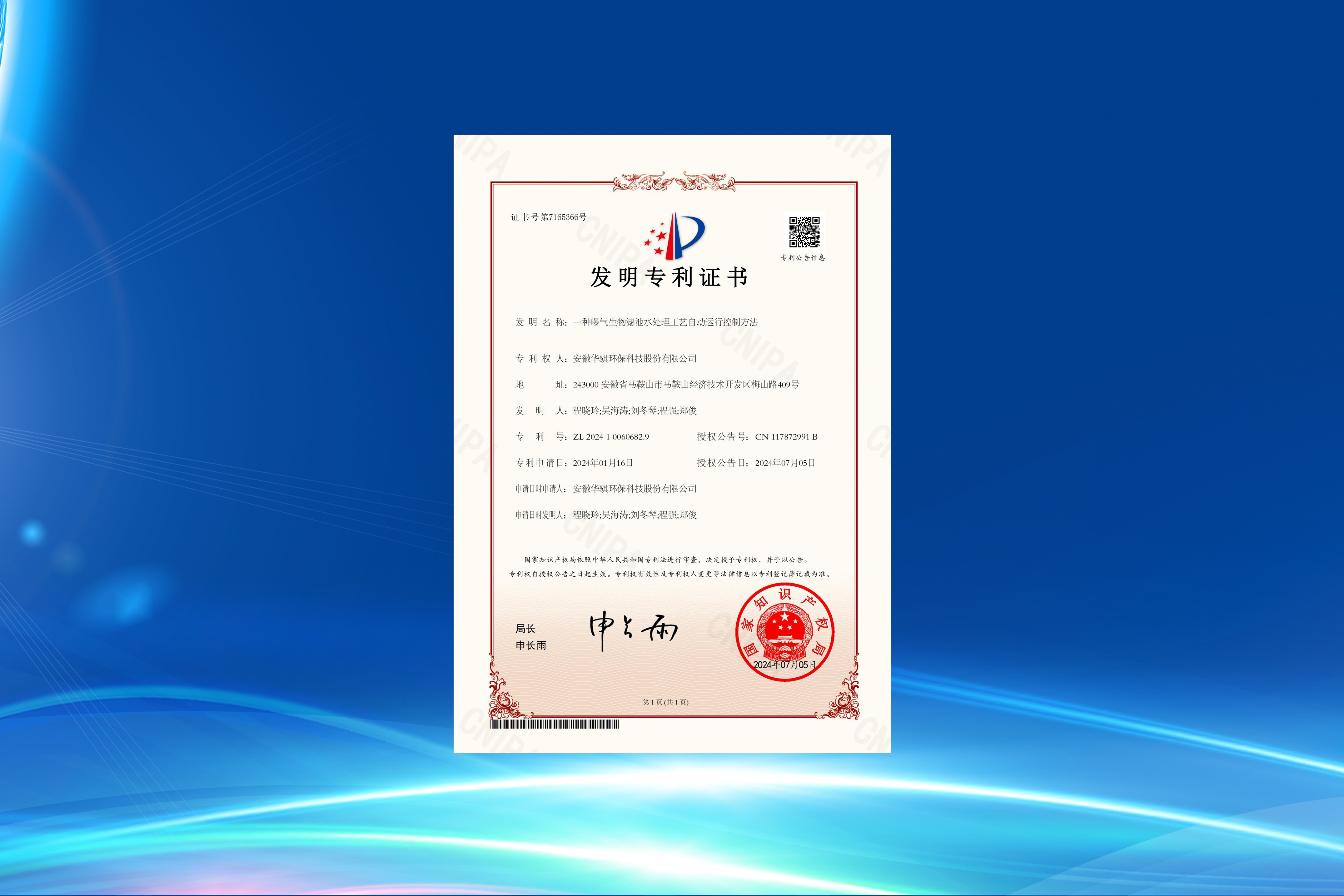 據(jù)國家知識產(chǎn)權局公告,安徽華騏環(huán)??萍脊煞萦邢薰救〉靡豁椕麨椤耙环N曝氣生物濾池水處理工藝自動運行控制方法”發(fā)明專利(ZL202410060682.9),授權公告號CN117872991B?!?/p>